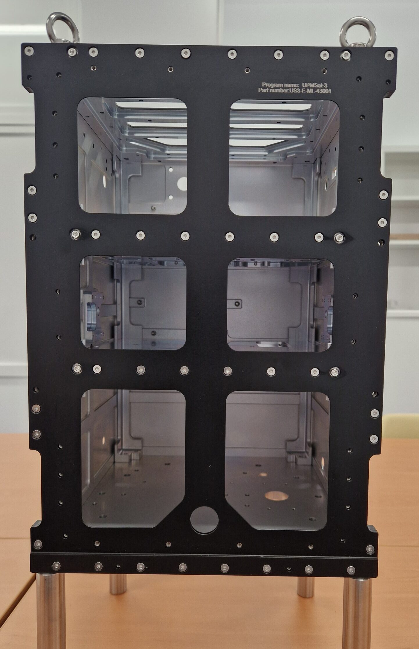 The structure of UPMSat-3, as in its predecessors, has been designed by the IDR/UPM mechanical design team. It is the element that provides mechanical and assembly support for the rest of the units and equipment that conforms the platform. It also ensures the geometrical and structural integrity of the system throughout its lifetime and particularly during launch.