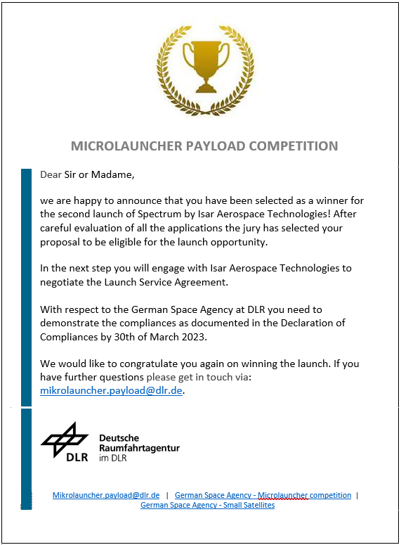 The IDR/UPM has successfully continued its small satellite development line, securing a launch opportunity at no cost through selection in the competition promoted by Germany’s DLR (Deutsches Zentrum für Luft-und Raumfahrt) and the European Space Agency (ESA). The UPMSat-3 mission will launch aboard ISAR’s SPECTRUM vehicle, scheduled for Q2-Q3 of 2025